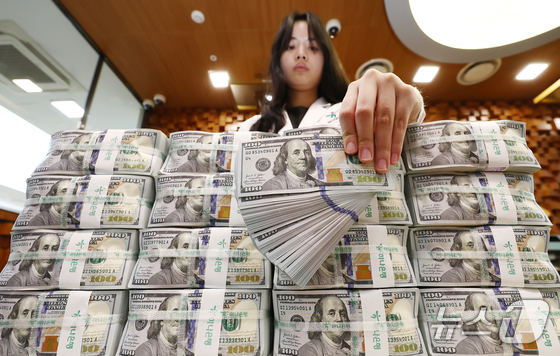 서울 중구 하나은행 위변조대응센터에서 은행 관계자가 달러화를 정리하는 모습. ../뉴스 News 김민지 기자달러·원 환율이 …