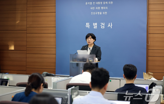 12·3 비상계엄' 관련 내란·외환 사건을 수사하는 내란특검팀 박지영 특검보가 서울 서초구 서울고등검찰청에 마련된 내란특검 사무실에서 정례 브리핑을 하고 있다. 2025…
