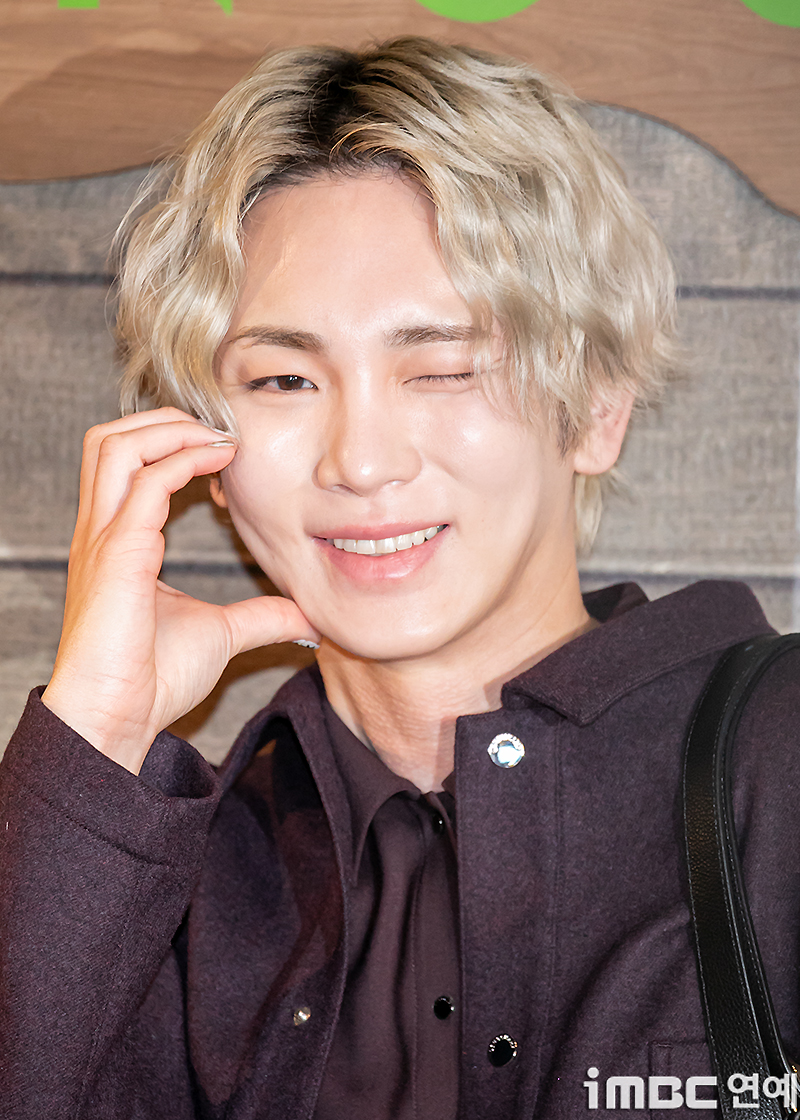 샤이니(SHINee) 키가 11일 오전 서울 잠실에 위치한 한 백화점 팝업스토어에서 열린 프랑스 패션 브랜드 오픈 행사에 참석해 포즈를 취하고 있다. 이날 키는 뿌염이 덜 된 굵은