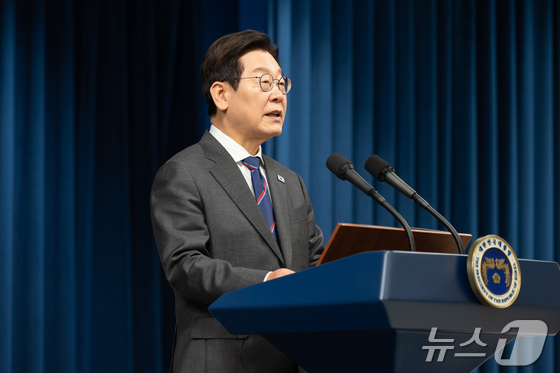 이재명 대통령이 지난 일 서울 용산 대통령실 청사에서 공동언론발표를 하고 있다. 대통령실 제공. 재판매 및 DB 금지 ../뉴스 co…