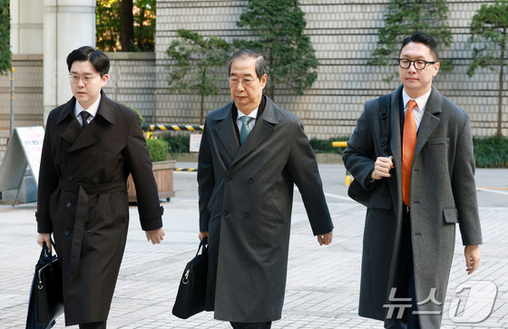 한덕수 전 국무총리가 일 오전 서울 서초구 서울중앙지방법원에서 열린 내란 우두머리 방조 혐의 차 공판에 출석하고 있다. ../뉴스 News…