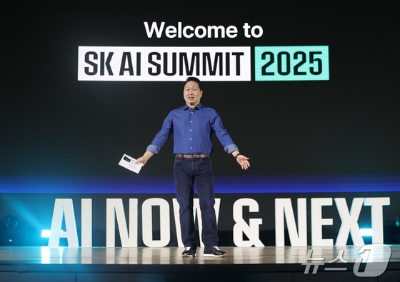 최태원 SK그룹 회장이 일 서울 강남구 코엑스 오디토리움에서 열린 'SK AI 서밋 ' 키노트 세션에서 'AI Now amp Next'를 주제로 기조연설을…