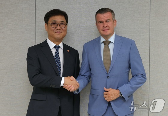최휘영 문화체육관광부 장관이 일 서울 여의도 국회에서 위톨드 반카 세계도핑방지기구WADA 회장과 면담 후 기념 촬영을 하고 있다. 문화체육…