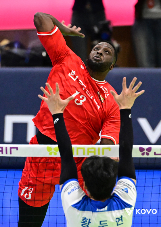 한국전력 외국인선수 베논. KOVO 제공남자 프로배구 한국전력이 삼성화재를 제물로 개막 첫 승을 신고했다.한전은 일 경기 수원체육관에서 열린 …