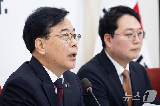 송언석 국민의힘 원내대표가 지난 17일 서울 여의도 국회에서 열린 천하람 개혁신당 원내대표와의 회동에서 모두 발언을 하고 있다. 2025.12.17/뉴스1 …
