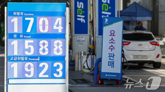 2일 서울 시내 한 주유소에 유가정보가 게시돼 있다. 2025.11.2/뉴스1 News1 김도우 기자전국 주유소 휘발유 가격이 2주 연속 상승했다. …