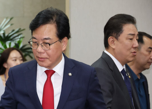 김병기 더불어민주당 원내대표와 송언석 국민의힘 원내대표가 지난 9월 22일 국회에서 열린 국회운영위원회 전체회의에서 악수한 뒤 이동하고 있다. (사진=연합뉴스) [이데일리 한광범