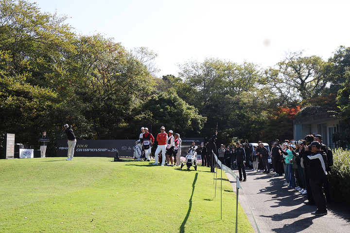 9일 제주도 서귀포시에 있는 테디밸리 골프앤리조트 1번홀에서 KPGA 투어챔피언십에 출전한 선수들이 티샷을 하고 있다. (MHN 서귀포, 김인오 기자) "코스 상태가 정말 좋다.