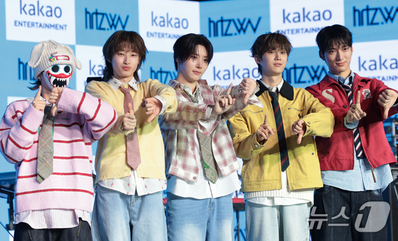 하츠웨이브(hrtz.wav)가 8일 오후 서울 마포구 문화비축기지 실내공연장에서 열린 첫 번째 미니앨범 '더 퍼스트 웨이브'(The First Wave) 발매 기념 데뷔 쇼케이스에