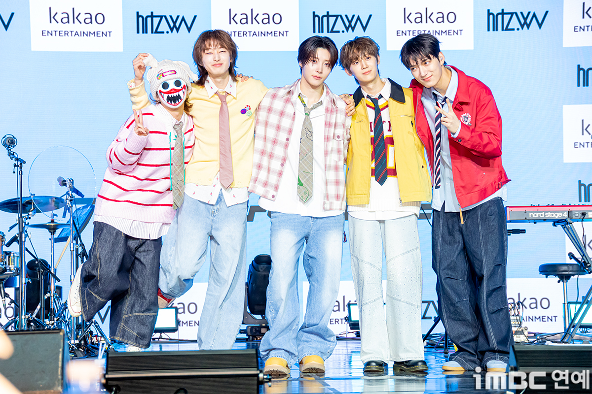 밴드 하츠웨이브hrtz.wav 하기와왼쪽부터와 케이텐, 리안, 윤영준, 데인이 8일 서울 마포구 문화비축기지에서 열린 첫 번째 미니앨…