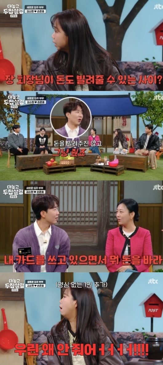 방송 시청 후 작성된 리뷰 기사입니다. [OSEN=임혜영 기자] 장윤정이 손준호에게 현금 플렉스를 했다. 4일 방송된 JTBC ‘대놓고 두 집 살림’(이하 두 집 살림)에는 손준호