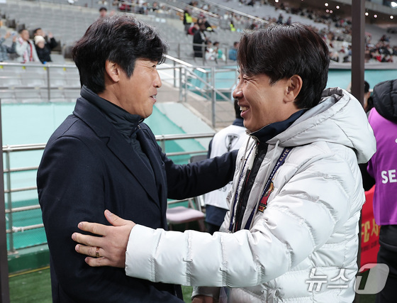FC서울 김기동 감독오른쪽과 청두 룽청 서정원 감독이 일 서울 마포구 서울월드컵경기장에서 열린 '- 아시아축구연맹AFC…