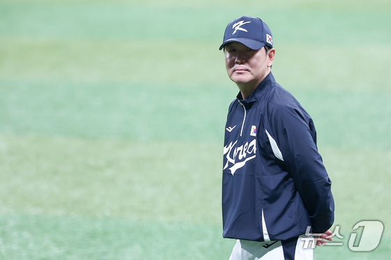 야구대표팀 류지현 감독이 7일 서울 고척스카이돔에서 선수들의 훈련 모습을 지켜보고 있다. 류지현 감독이 이끄는 대표팀은 오는 8,9일 체코에 이어 15,16일에 일본과 …