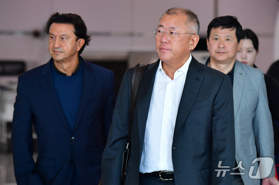 정의선 현대자동차 그룹 회장이 호세 무뇨스 현대차 사장 등과 함께 28일 사우디아라비아 일정을 마친 후 경북 경주에서 열리는 APEC 회의에 참석하기 위해 포항경주공항을…