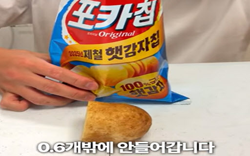 [이데일리 홍수현 기자] 한 유튜버가 ‘질소 과자’의 대표 격으로 꼽히는 오리온 제과 감자 과자 ‘포카칩’에 원재료가 실제 얼마나 들어가는지 실험을 통해 결과를 공개했다. 이에 오