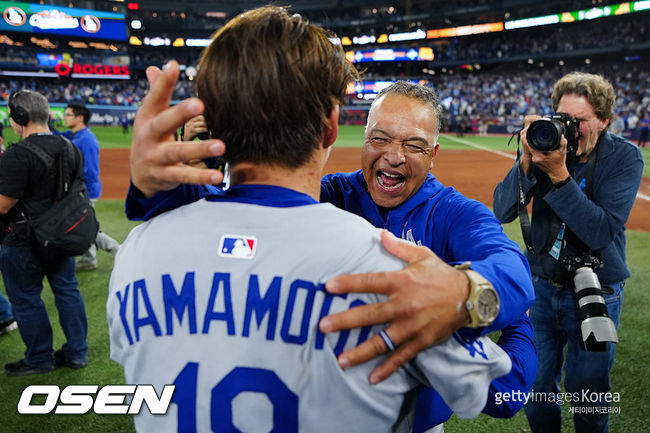 "야마모토가 나를 꽤 훌륭한 감독으로 만들었다"…'승부사' 로버츠 뚝심이 만든 우승, 끝없는 야마모토 '샤라웃'