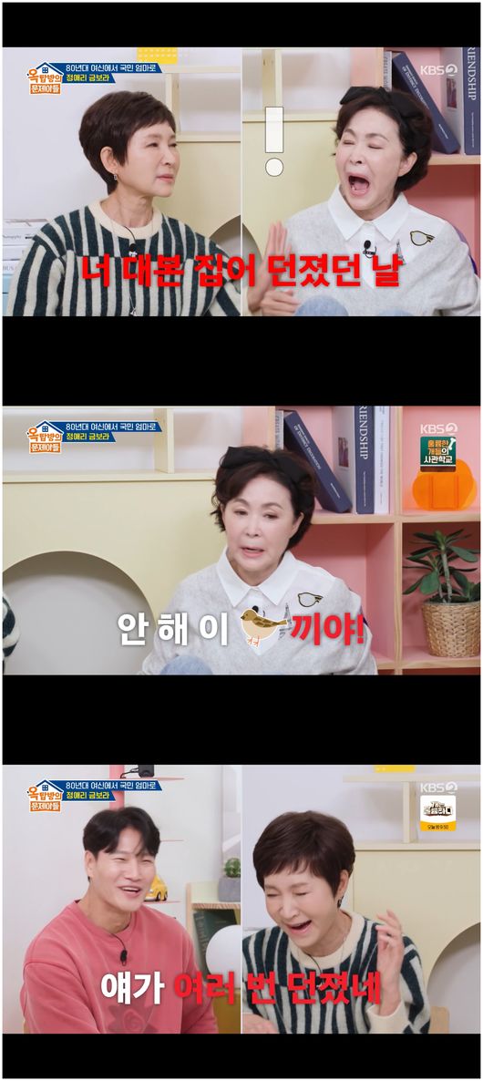 <리뷰 : 방송 시청 후 작성된 리뷰 기사입니다.> [OSEN=오세진 기자] ‘옥탑방의 문제아들’ 배우 정애리가 금보라에 대한 첫인상을 잊질 못했다. 6일 방영한 KBS2TV 예능