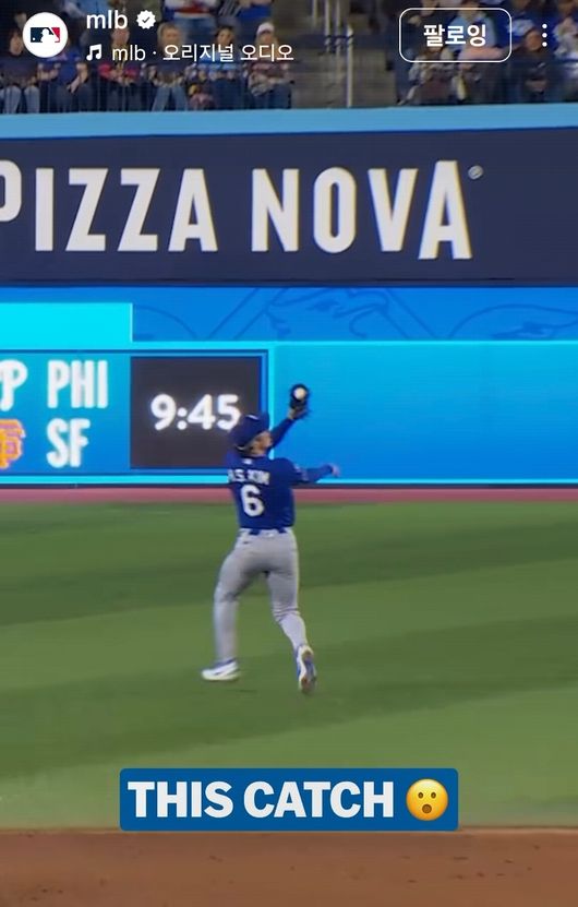 행운의 안타를 센스로 잡았다! 김혜성 슈퍼캐치, MLB 공식계정도 감탄…타격에서도 3출루 활약