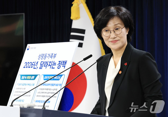 원민경 성평등가족부 장관이 19일 서울 종로구 정부서울청사에서 업무보고 사후 브리핑을 하고 있다. 2025.12.19/뉴스1 News1 임세영 기자성…