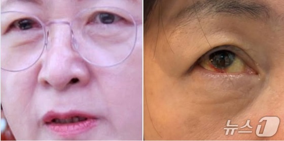 추미애 국회 법사위원장이 일 자신의 SNS에 '국민의힘 비협조로 법사위 진행이 너무 힘들어 안구 실핏줄이 터지고 귀각 먹먹해 져 병원을 찾았다'며 충혈된 눈 …