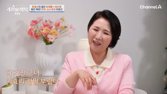 채널A '4인용식탁' 캡처이호선이 이효리를 부러워했다.22일 오후 방송된 채널A '절친 토큐멘터리 4인용식탁'이하 '4인용식탁'에서는 상담가 이…