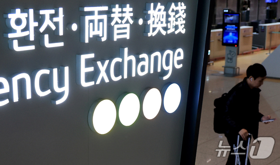 16일 인천공항 제2여객터미널 공항 환전소 앞을 여행객이 지나가는 모습. 2025.12.16/뉴스1 News1 이호윤 기자달러·원 환율이 1470원대…