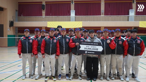 롯데 황성빈, 모교 소래고에 1000만원 상당 야구용품 전달