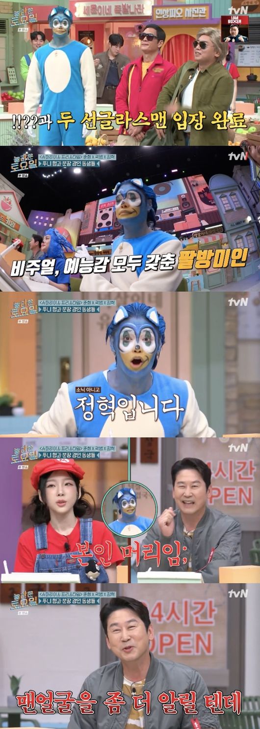 방송 시청 후 작성된 리뷰 기사입니다. [OSEN=임혜영 기자] 정혁이 분장도 즐기는 모습을 보였다. 1일 방송된 tvN ‘놀라운 토요일’(이하 놀토)에는 박준형, 곽범, 정혁이