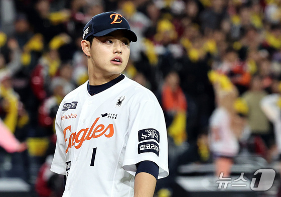 일 오후 대전 한화생명볼파크에서 열린 프로야구 신한 SOL뱅크 KBO 한국시리즈 차전 LG트윈스와 한화 이글스의 경기, 한화 선발투수 문동주가 회초에 …