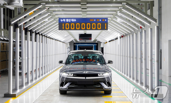 아이오닉5 News1 송원영 기자현대자동차005380가 아이오닉 5와 코나 EV를 생산하는 울산 1공장 12라인의 가동을 11월 1…