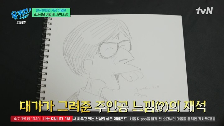 (MHN 박선하 기자) 허영만 화백이 그린 유재석 캐리커처가 웃음을 자아냈다. 1일 방송된 tvN '유 퀴즈 온 더 블럭'에는 한국 만화계를 대표하는 허영만 화백이 출연해 다양한