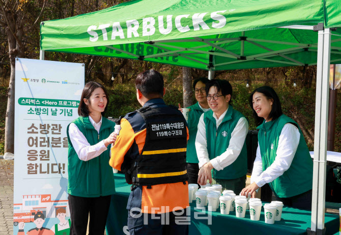[이데일리 김지우 기자] 스타벅스 코리아가 소방의 날을 맞아 재난현장에서 안전을 위해 헌신하는 소방공무원에 대한 감사의 마음을 전했다. 스타벅스 파트너들이 지난 6일 소방의 날 맞