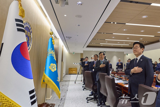 이재명 대통령이 4일 서울 용산 대통령실 청사에서 열린 국무회의에서 국민의례를 하고 있다. 대통령실 제공. 재판매 및 DB 금지 2025.11.4/뉴스…